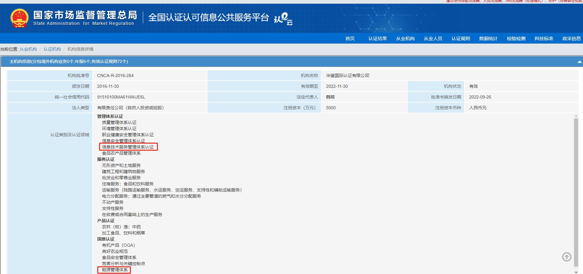 热烈祝贺华鉴认证获得国家认证认可监督管理委员会批准的:ISO50001能源管理体系和ISO/IEC20000信息技术服务管理体系认证资质。