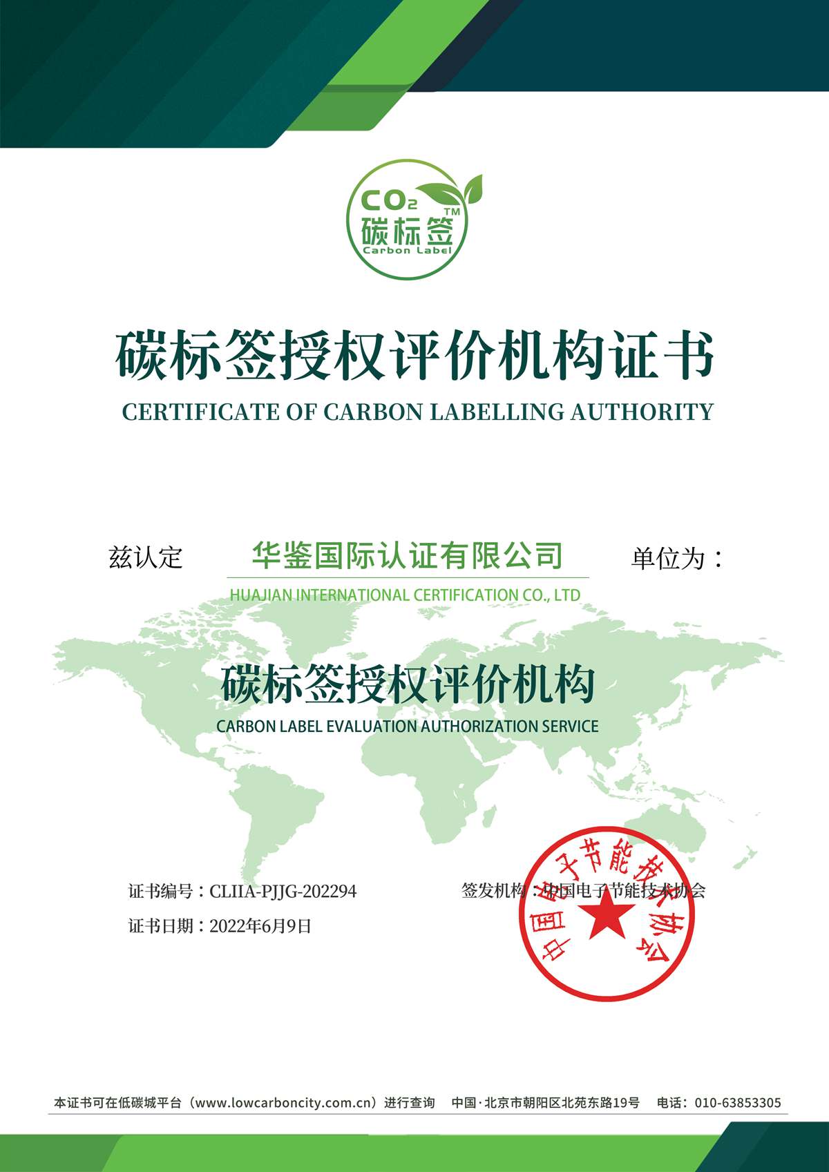 碳标签授权评价机构证书