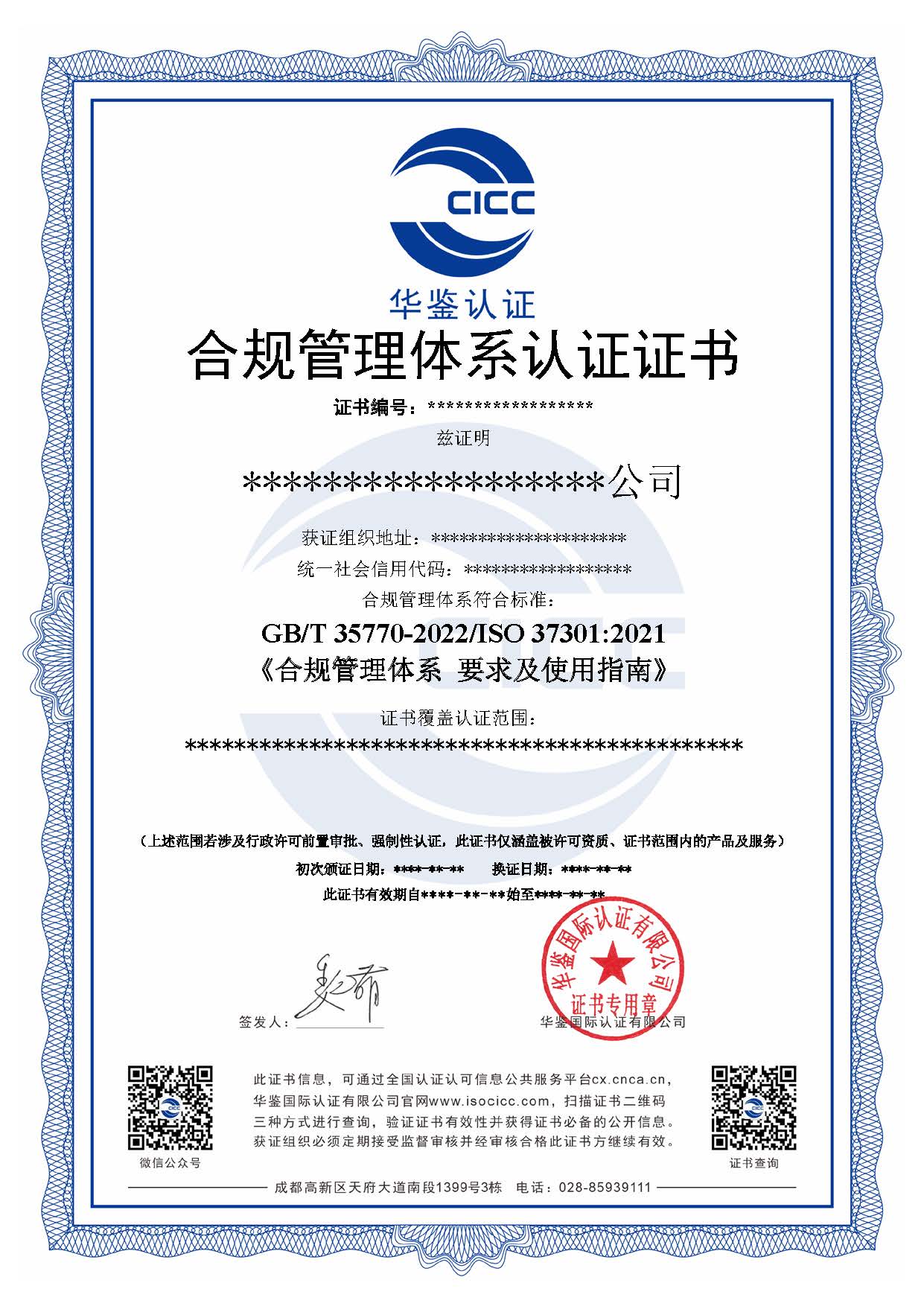 合规管理体系认证证书
