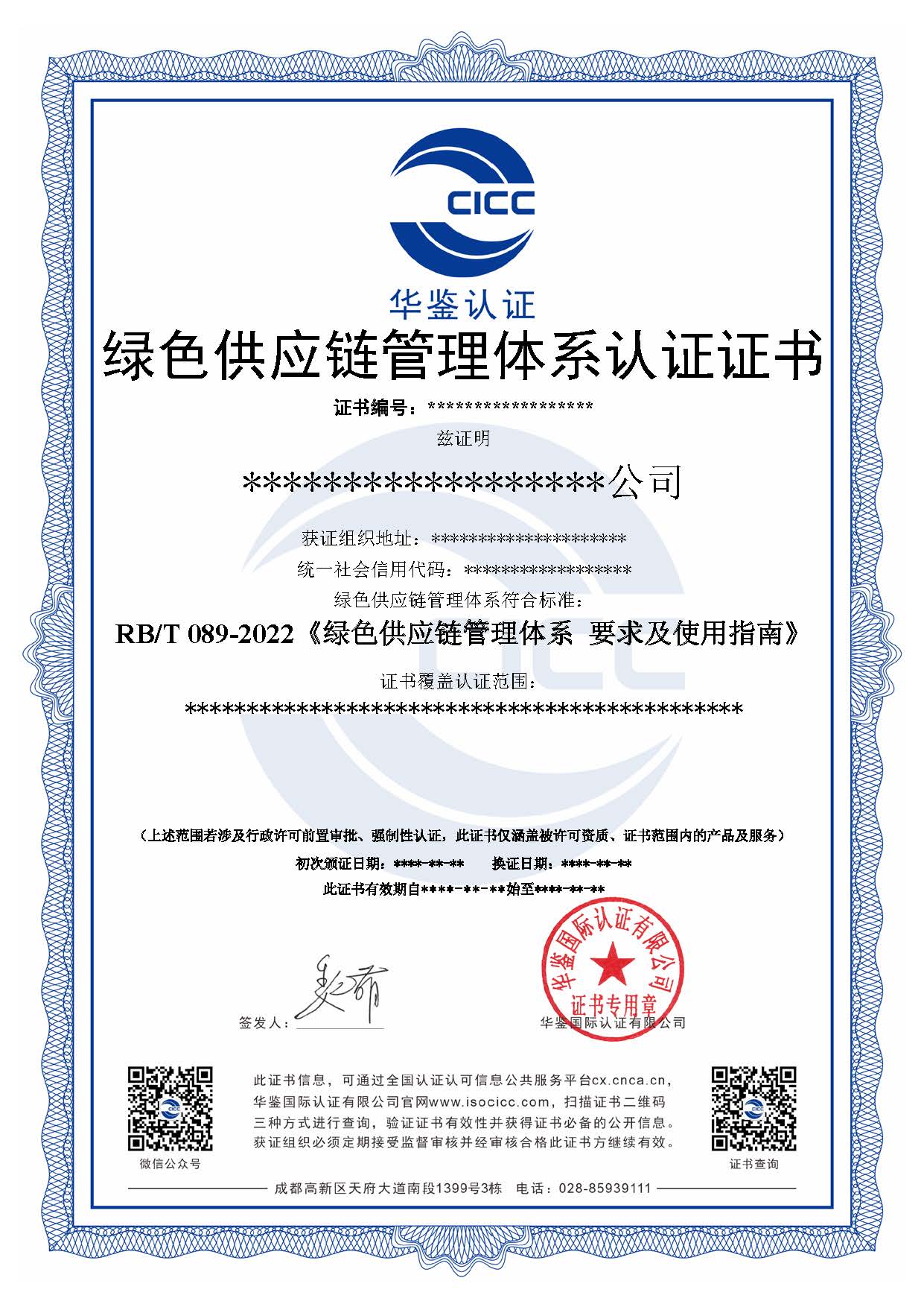 绿色供应链管理体系认证证书