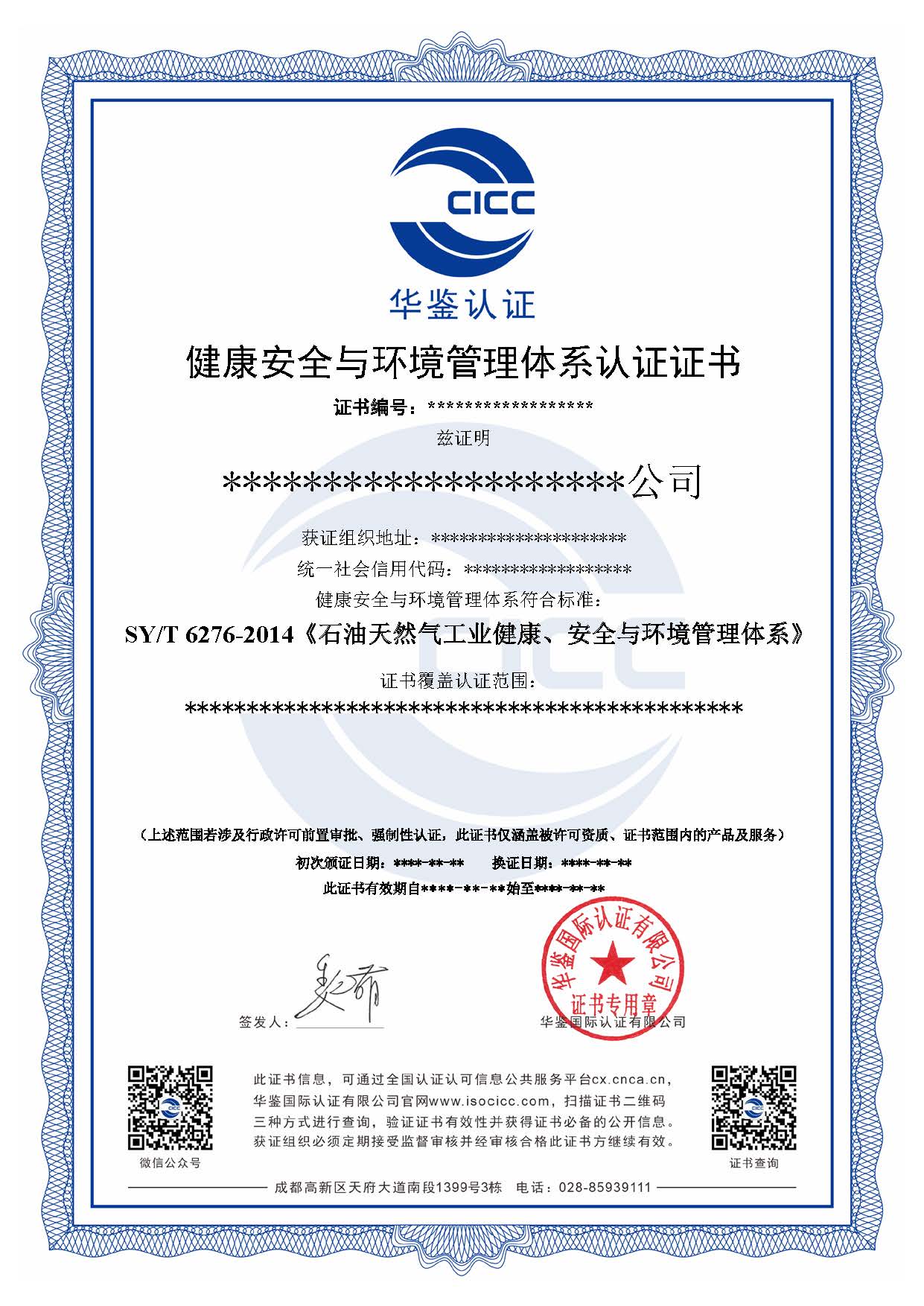 HSE健康安全环境管理体系认证证书