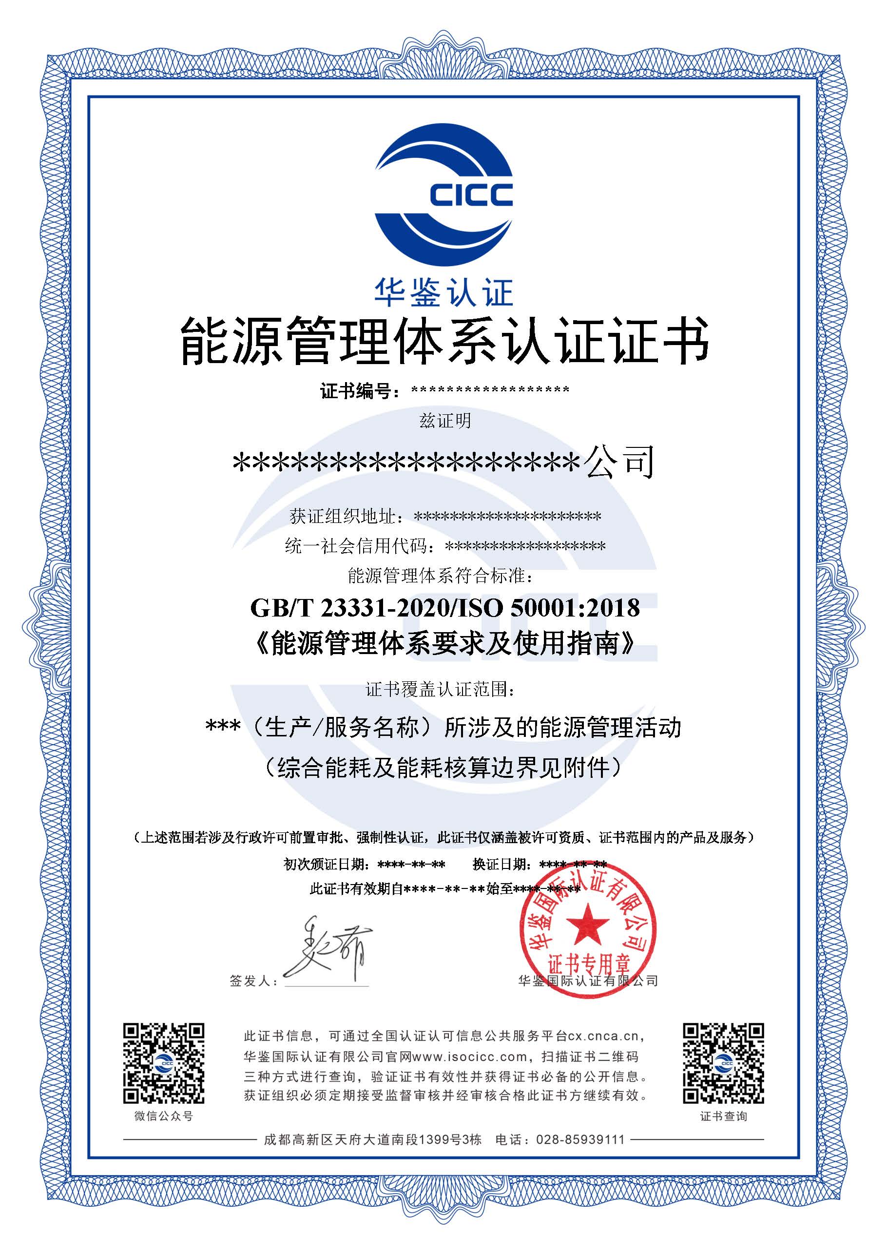 能源管理体系认证证书