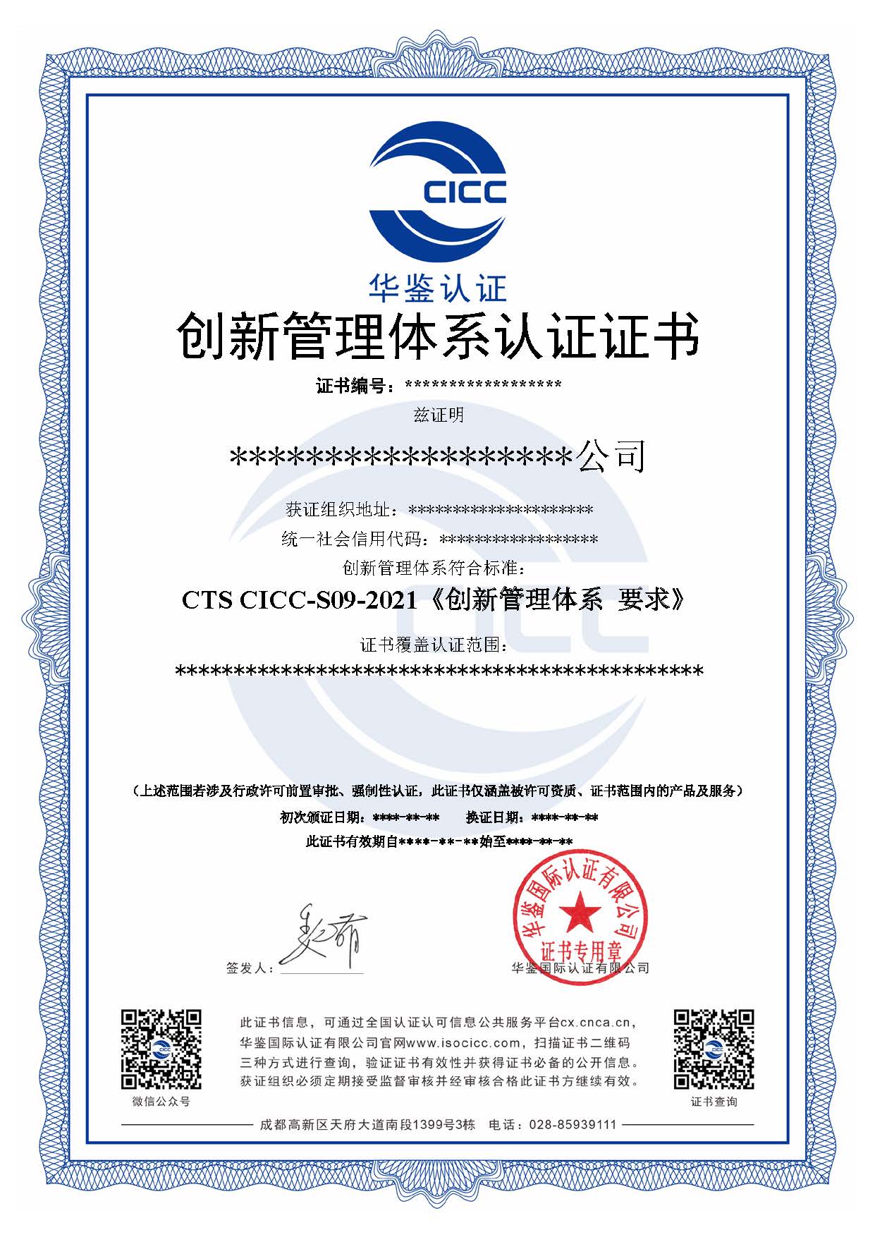 创新管理体系认证 CTS CICC-S09