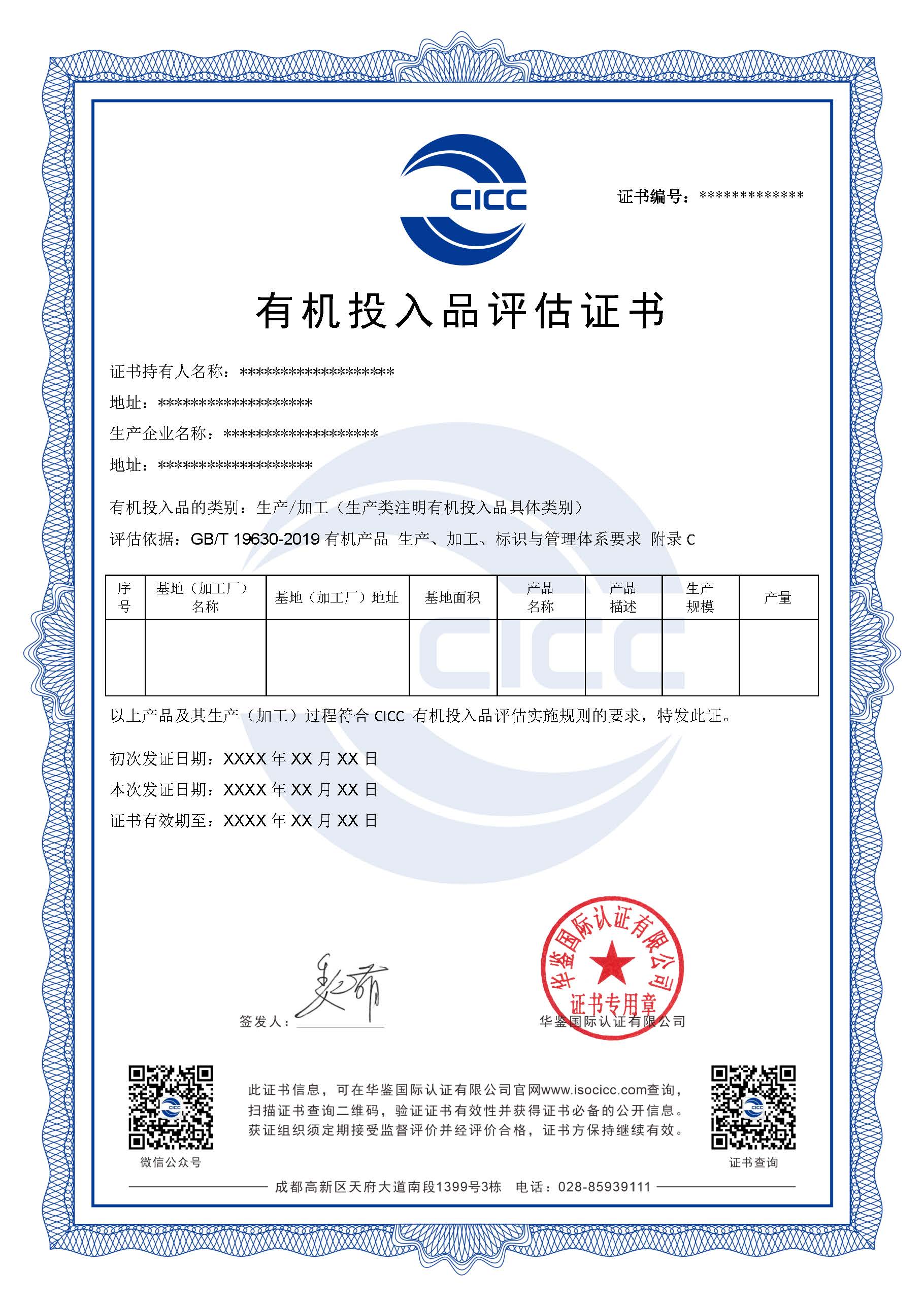 有机投入品评估证书有效期为1年,评价证书到期前3个月向我们提出再评价申请。