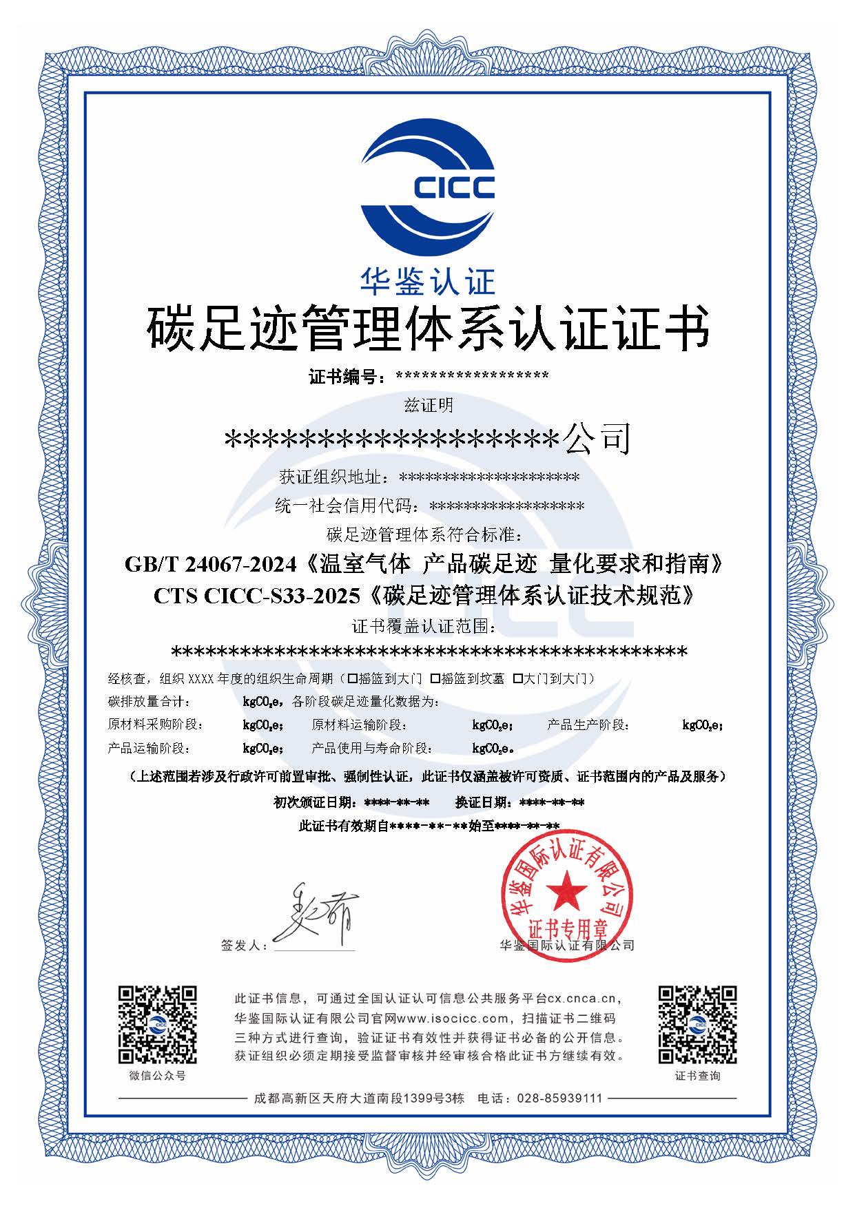 2.申请方应按照国际有效标准(GB/T 24067-2024)的要求在组织内建立管理体系,并实施运行至少3个月以上;